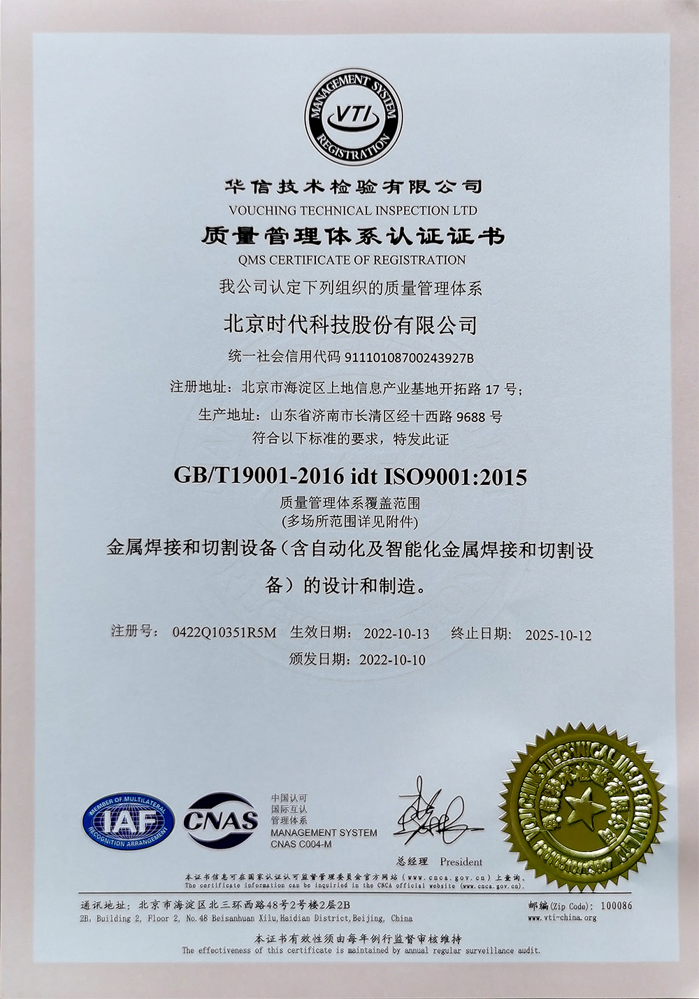 ISO質(zhì)量管理體系認(rèn)證證書