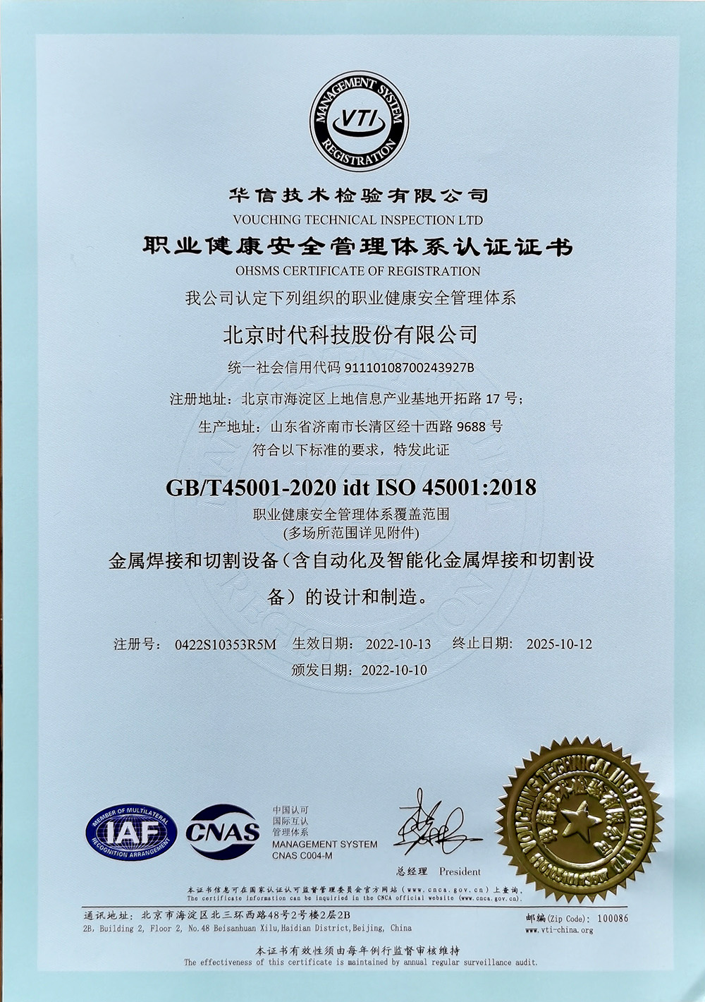 ISO職業(yè)健康安全管理體系認(rèn)證證書