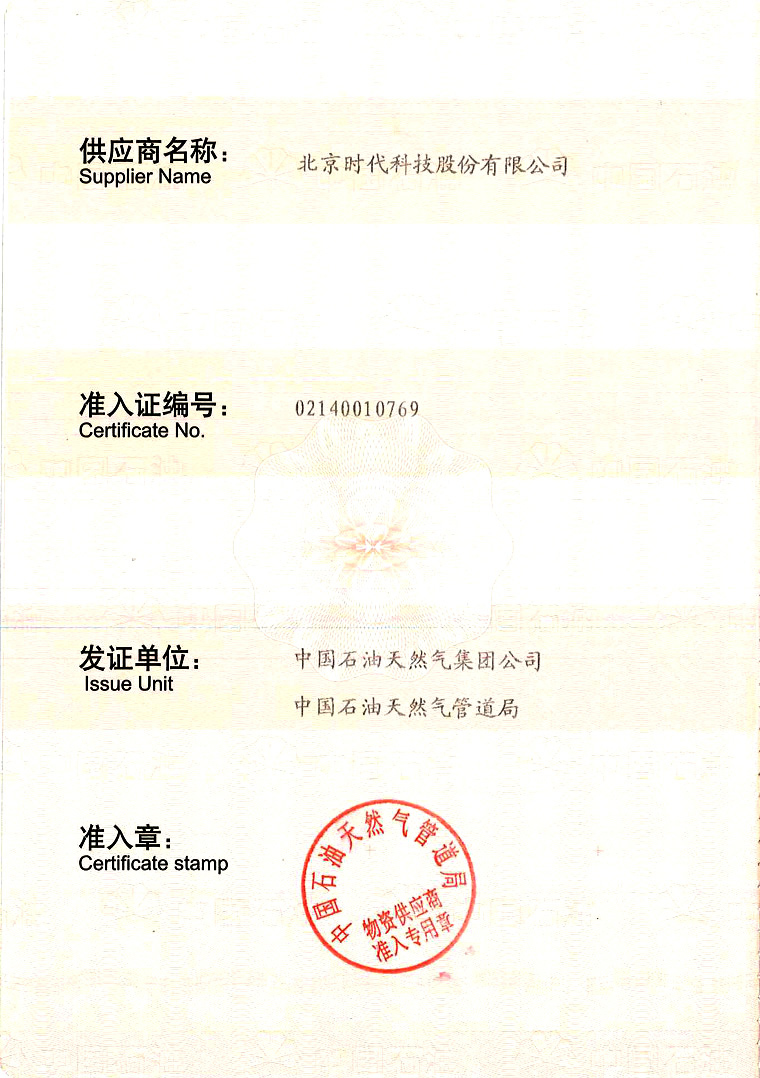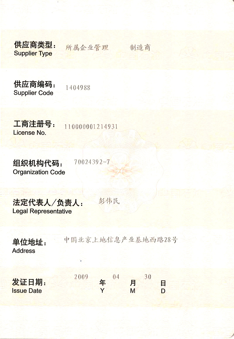中國石油天然氣集團(tuán)公司物資供應(yīng)商準(zhǔn)入證
