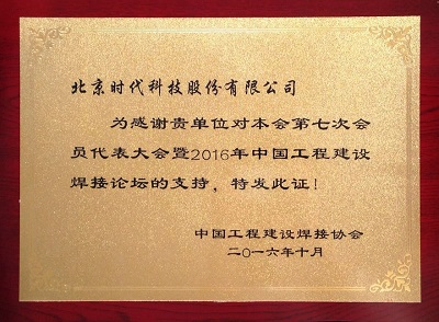 北京時代科技股份有限公司榮獲中國工程建設焊接協會優秀支持獎