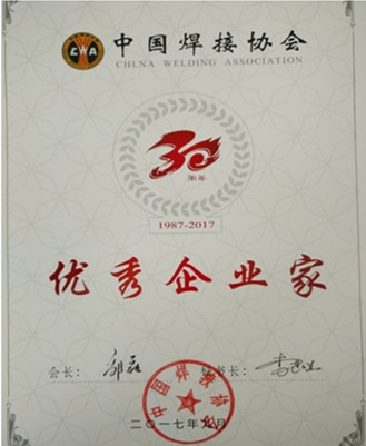 翟總獲得“中國焊接行業優秀企業家”榮譽