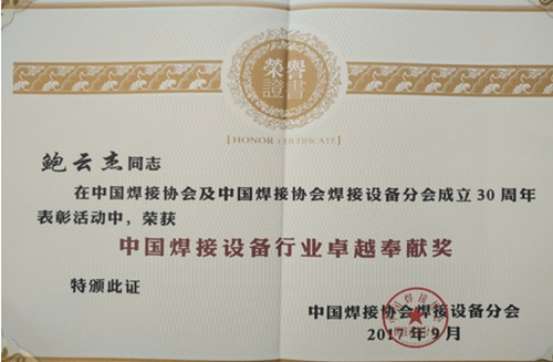 鮑云杰榮獲“中國焊接設備行業卓越奉獻獎”榮譽