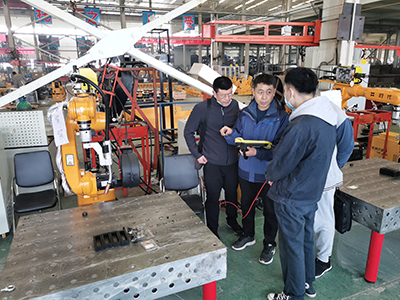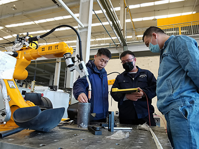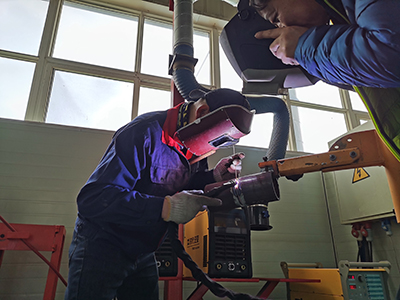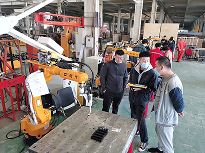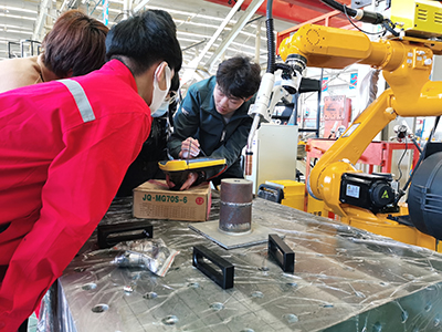 為了幫助學員們盡快掌握機器人焊接技巧,提高焊接水平,時代公司調配了經驗豐富的焊接技師為學員授課。本次培訓內容主要以實際操作為主。實操內容包括焊條電弧焊、熔化極氣體保護焊、鎢極氬弧焊和機器人熔化極混合氣體保護焊等。