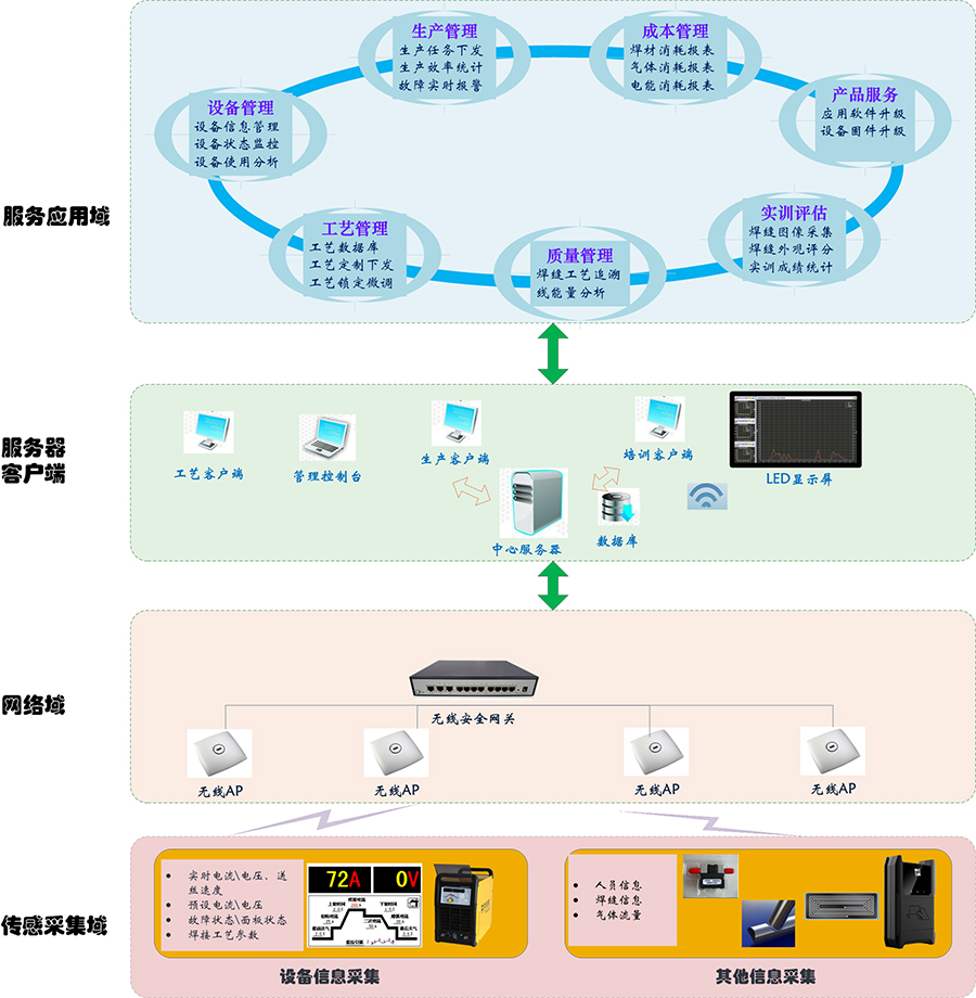 工業設備數字化,信息網絡化已經不再是新鮮的課題,物聯網時代在工業領域悄然降臨。時代焊接設備的數字化,網絡化,智能化特質使其不再是一個單純的生產工具,而是數字化焊接生產現場的一部分。通過采集、控制、統計、分析焊接生產及焊接培訓的數據,為焊接生產管理者,焊接工藝管理者,焊接設備管理者、焊接培訓管理者提供了新的管理手段。