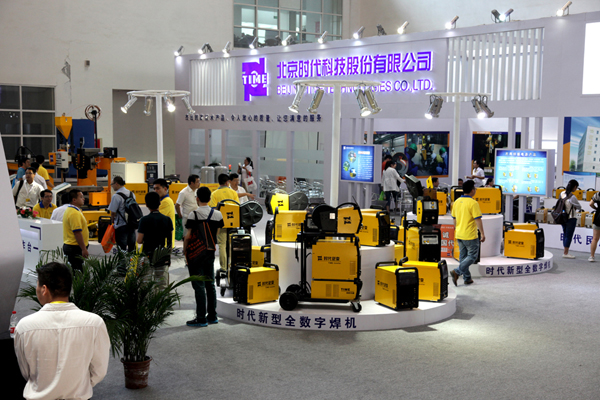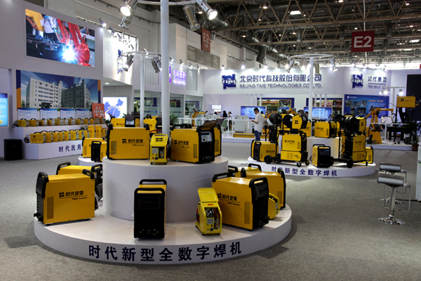 時代展臺用最大的篇幅展現了時代焊接電源產品系列,各類焊機的展示和演示組成了焊接電源展示區。時代第三代新型TD系列全數字焊機是展示區的主角。外形設計美觀獨特的TD系列焊機吸引了觀眾的目光,紛紛駐足觀賞。展示區前面是TD系列電源演示施焊區,公司設置了五個焊接操作臺,有四個操作臺安排由焊接技師進行表演,每個操作臺都安裝了專業視頻監視器,它將焊接演示過程轉播到后面的大屏幕液晶電視上供觀眾觀看。今年演示的焊機均為最新型TD系列全數字焊機。演示機全部實現集控聯網控制,由布置在后面的集控臺電腦遠程遙控。今年在演示區增加了現場解說功能,并在操作臺的后面設置了高20厘米寬50厘米的講解臺,講解員手持無線麥克風沿著這條地臺在五個操作臺后穿梭往來,不斷地向來賓介紹著時代最新的技術和產品。