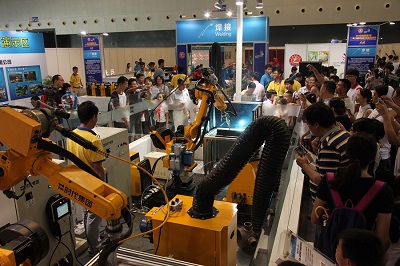 時代展區(qū)按展品的類型分為時代弧焊機器人設備、TD系列全數(shù)字焊機、焊接培訓模擬儀、焊接材料等四個主題,還提供了技師演示、咨詢接待、微信互動等服務。其中,焊接機器人、微信互動獨具魅力。時代微信打印機為觀眾定格美麗,時代機器人以其優(yōu)質精良的焊縫和精準高效的焊接動作折服了現(xiàn)場觀眾,令不少青年人躍躍欲試親自操控機器人動作。焊接培訓模擬儀也令人印象頗深。觀眾們紛紛參與演示活動,通過VR眼鏡體驗3D立體焊接畫面,實時觀測焊槍與焊接空間的距離,模擬真實的焊槍手感,同步立體顯示操作動作。